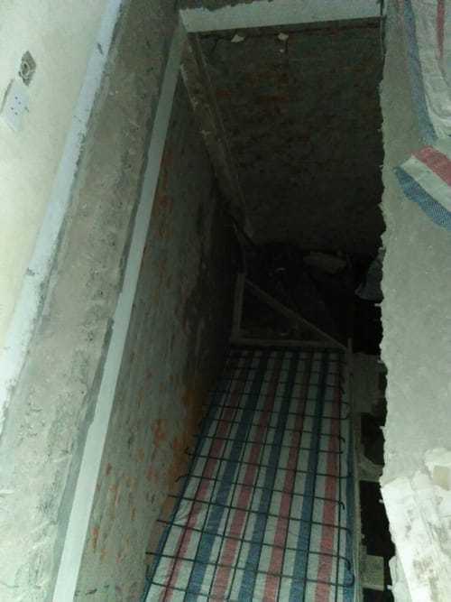 Cầu thang cũDóc toàn bộ nền và tườngHiện trạng trước khi cai tạoCầu thang cũ chiếm khá nhiều diện tích