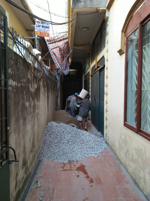 – Đục gạch nền tầng 1 chuyển bỏ đi