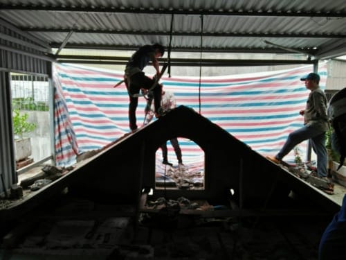 – Tháo bộ cửa sắt cũ