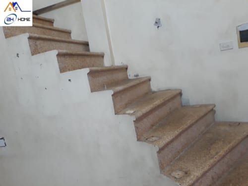 – Đổ bàn cầu thang mới bằng bê tông, cốt thép, xây bậc lát đá cổ trắng mặt đen,