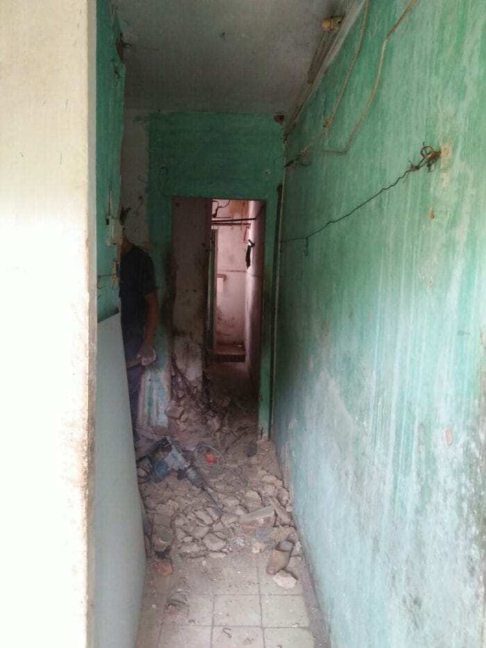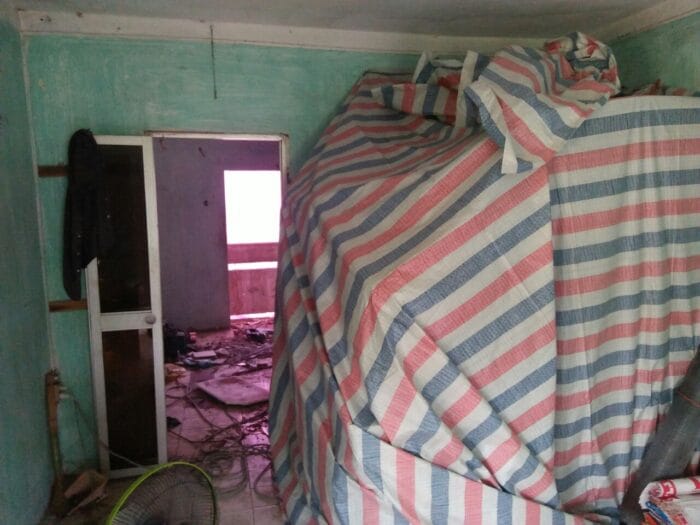 Hình ảnh và video thi công cơi nới ban công và cải tạo nhà tập thể cũ nhà chị Liên tầng 5.