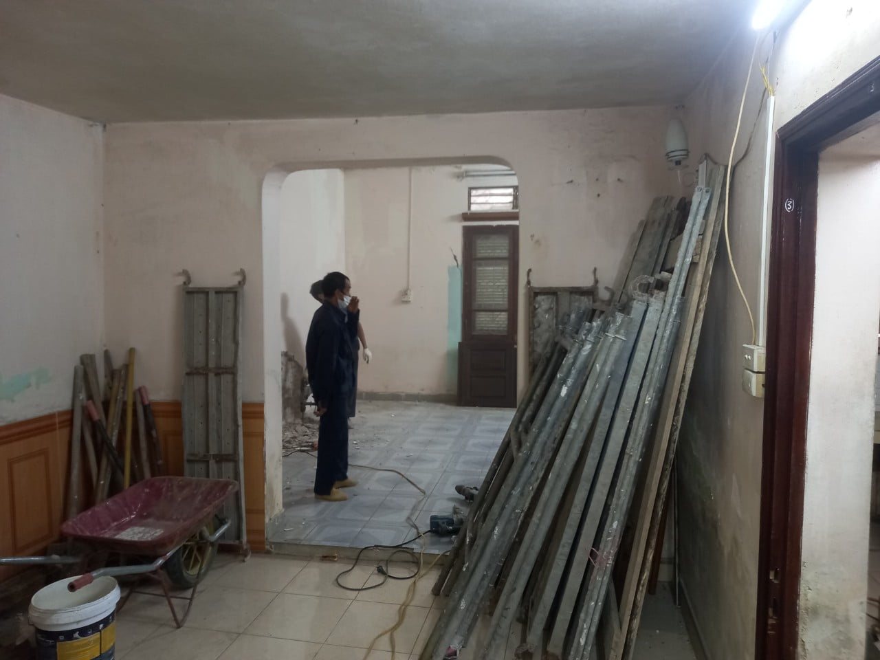| Công thợ cắt đục mở rộng một cửa phòng khách, một cửa vào phòng ngủ, 1 cửa từ bếp ra sân sau nhà, tường nhà vệ sinh cũ (tường 110). Tháo dỡ thiết bị vệ sinh. | |