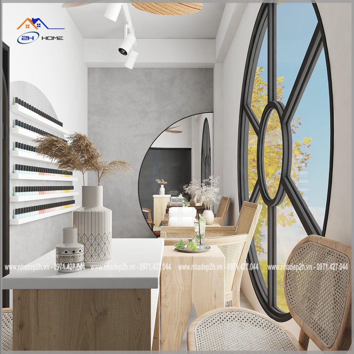 Làm đẹp là nhu cầu tất yếu của mọi người dù là ở bất kì đâu. Các tiệm nail, thẩm mỹ cũng vì thế mà được mở ra nhiều hơn. Tuy nhiên để thu hút nhiều khách hàng thì không chỉ dựa vào tay nghề làm nail của người thợ đó. Mà nó còn phụ thuộc và vẻ đẹp trong thiết kế & thi công nội thất tiệm nail. Cũng vì lẽ đó mà yêu cầu thiết kế, trang trí và vận hành một tiệm nail cũng ngày một trở nên đa dạng. 2H HOME xin chia sẻ mẫu thiết kế thi công tiệm nail nhỏ để các bạn tham khảo qua bài viết dưới đây.