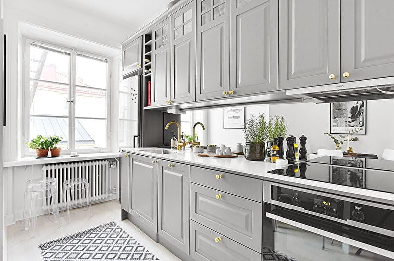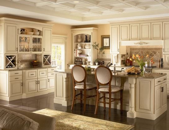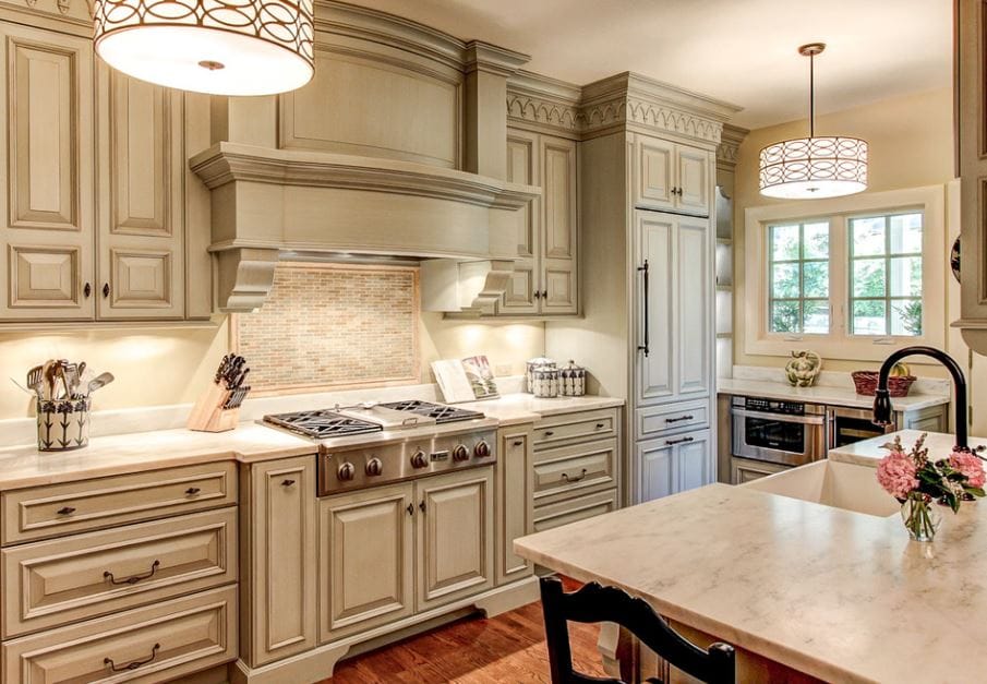 Nét đặc trưng trong phong cách này là sự kết hợp giữa sự cổ điển và hiện đại, đem đến không gian sang trọng. Bởi vì sự cầu kỳ và phức tạp từ những đường nét trang trí của tủ cho đến cách sắp xếp các thiết bị như bếp, kệ bát,… Phong cách thiết kế này phù hợp với gia đình có không gian bếp rộng và có tài chính khá giả.